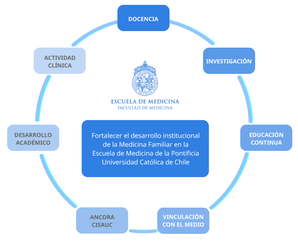 Como disciplina académica participamos en la formación de médicos y otros profesionales de salud para Chile, y generamos conocimiento para el desarrollo y la difusión de la medicina familiar y de la atención primaria como medios para mejorar la salud de nuestra población.