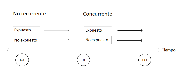 Lo habitual en un estudio de cohorte es que el investigador sea contemporáneo con el inicio del seguimiento de los grupos, vale decir, asista a la agrupación de los individuos sanos. En este caso se acuña el término de estudio concurrente.