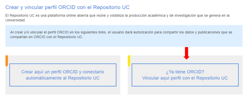 Los siguientes son los pasos para vincular ORCID con el Repositorio UC: