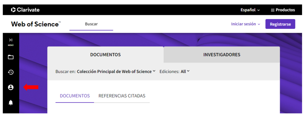 Una vez registrado, o si ya tiene cuenta en Clarivate Web of Science, en el menú lateral izquierdo hacer clic en la opción Perfil de Investigador (Researcher Profile en la versión en inglés).