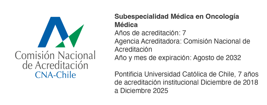 Oncología Médica es una especialidad derivada de la Medicina Interna, que se dedica al estudio, diagnóstico y manejo médico de enfermedades neoplásicas no hematológicas (tumores sólidos). El Programa se encuentra dividido en cuatro semestres académicos, durante los cuales el residente tendrá rotaciones (con docencia tutorial), cursos y otras actividades organizadas, con el fin de adquirir en forma progresiva los contenidos teóricos y prácticos necesarios para la práctica de la Oncología Médica.