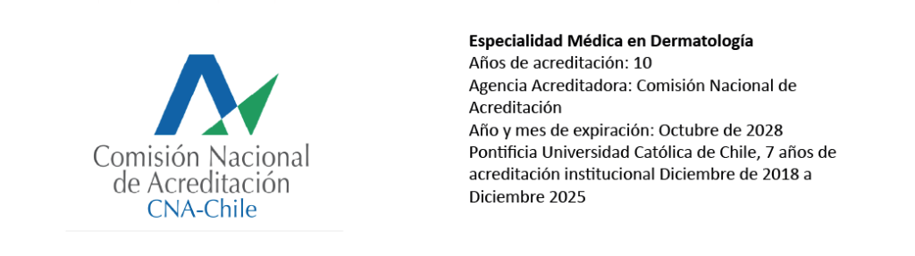El programa de especialidad médica en Dermatología de la Universidad Católica de Chile, se remonta al año 1993, y hasta la fecha, se han formado 70 especialistas de excelencia entre profesionales nacionales y extranjeros. El programa cuenta con una variedad de campos clínicos, tanto para su desarrollo asistencial, como académico, además de una planta académica de alta gama, quienes están en constante perfeccionamiento, investigando y ampliando el campo disciplinar.